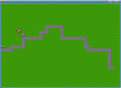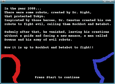 Hoje comecei programando umas telas de introdução, e como o tempo está feio demais para sair de casa, planejo ainda adicionar suporte a dois jogadores simultâneos na tela, o que já terminaria a base mais básica do jogo. Os próximos passos seriam adicionar suporte a tiros e NPCs, o que certamente vai exigir a reescrita de uma boa parte de código.